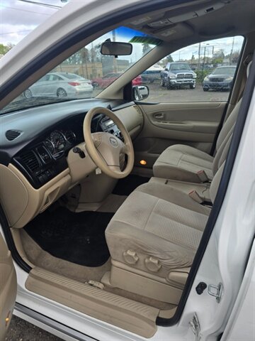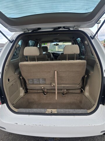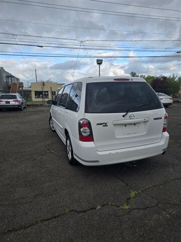 2004 Mazda MPV LX in White with a Tan interior, powered by a 3.0L naturally aspirated V6 DOHC 24-valve engine mated to a smooth automatic transmission. Factory equipment includes seating for seven with a third-row bench and reclining second-row seats, full power accessories (windows, door locks and mirrors), remote keyless entry, cruise control and tilt steering, air conditioning (with rear vents), AM/FM stereo with single-disc CD player, anti-lock brakes and standard front and side-impact airbags. This MPV is in excellent overall condition, has below 127,000 miles (averaging under 6,000 miles per year) and achieves approximately 16 MPG city / 23 MPG highway.