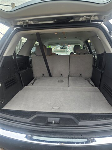 Factory-standard equipment includes common convenience and safety items such as 7-passenger seating with third-row, power windows and door locks with remote keyless entry, cruise control and steering-wheel audio controls, AM/FM/CD audio with auxiliary input, multi-zone climate control, ABS with traction and stability control, front and side-impact airbags plus full-length curtain airbags, tire-pressure monitoring and LATCH child-seat anchors.